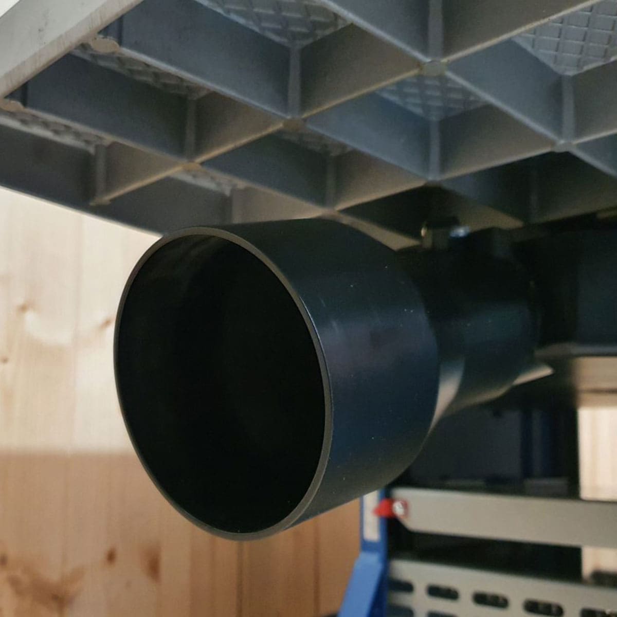 The redesigned dust hood now has a quick action clamp to allow faster removal when changing between Planing and thicknessing modes. The hood fits onto the thicknessing bed during planing operations and is then moved over the top when thicknessing. As a safety feature a location sensor detects that the dust hood has been correctly fitted before allowing the motor to run.