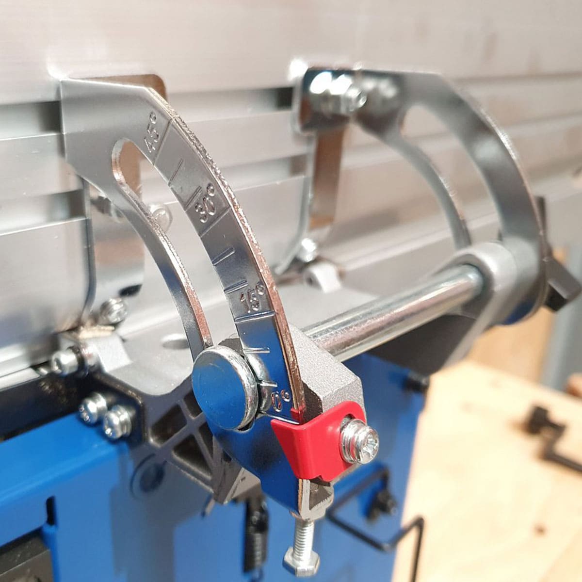The planing beds are precision ground aluminium and the guide fence is a rigid aluminium extrusion which can be tilted and locked at any angle up to 45 degrees when required.