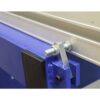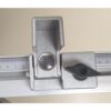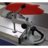 On the left hand side of the saw is the sliding carriage with a 48″ stroke. The whole beam runs effortlessly along its track on a set of bearings. At the front of the carriage a crosscut mitre guide can be fitted for crosscutting smaller pieces and solid timber. The fence is adjustable 60 degrees each way and has a vertical clamp to hold down the work piece. It can quickly be removed for panel work.