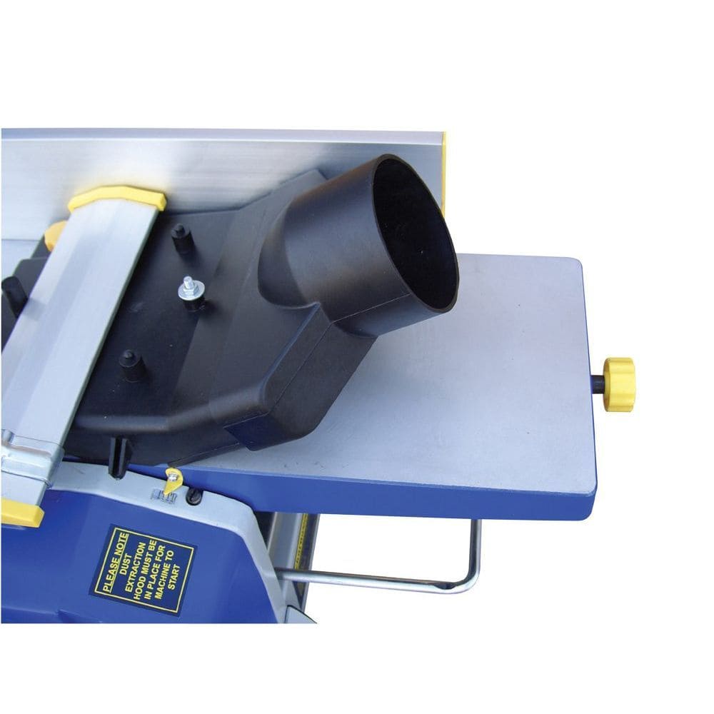 It is essential to use dust extraction with a planer thicknesser. The extractor removes all the dust and chips which will otherwise build up, causing a blockage and eventually damage to the machine. Using an extractor also increases the life of the knives.