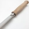 The Scandinavian pattern carvers drawknife features a 4 inch finely ground and polished blade made from 1095 high carbon tool steel which is hardened to 58-62 Hrc. The handles are from selected beech and the drawknife is supplied with a leather sheaf to protect the cutting edge.