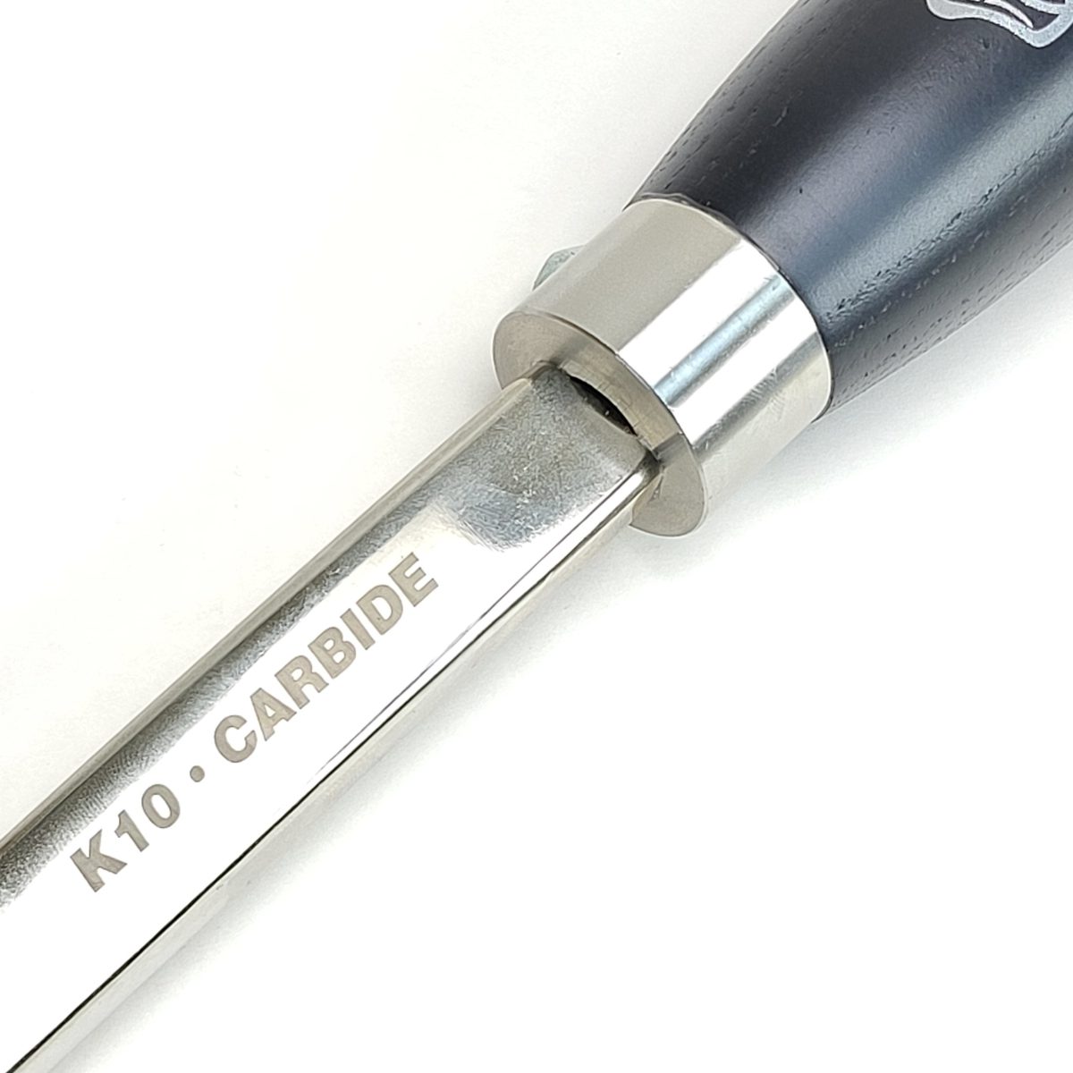 The round steel shaft sits comfortably on the the tool rest. It is 10mm diameter with enough strength to eliminate vibration from the cutting tip.