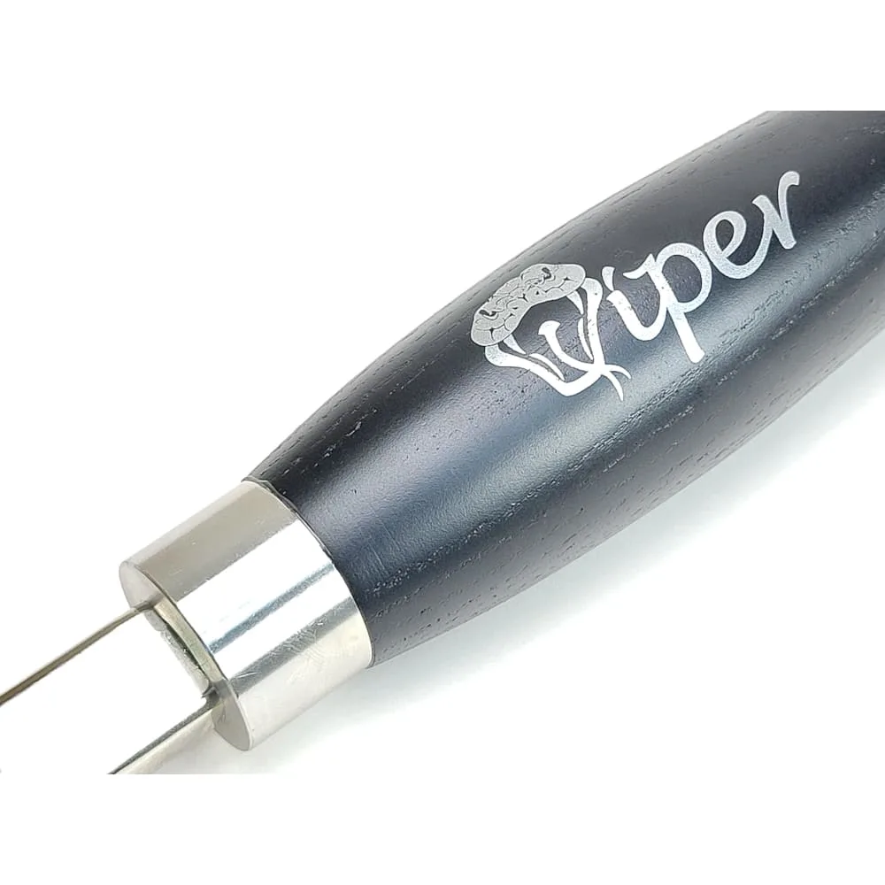 The handles are 390mm long and made from European Black Ash. A distinctive stainless steel ferrule connects a steel shaft which is chrome finished and laser etched. On the end is mounted a Tungsten Carbide (TC) cutting tip. The 3 razor sharp round cutting tips are 9mm in diameter with a bevelled edge. Carbide cutters are presented to the timber at 90 degrees and cut with a scraping action. The shaft of these tools are designed to allow access for hollowing out the inside of all kinds of bowls, whatever the shape and depth.