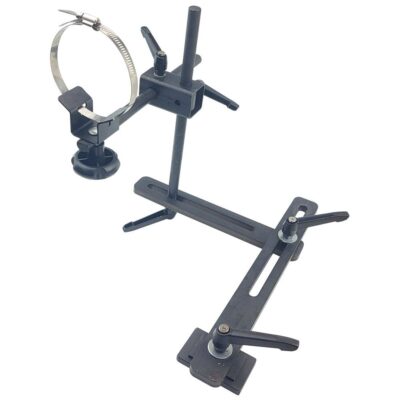 A further 3 arms then give adjustment in the X, Y & Z axis, each locks with a ratchet handle for fast adjustments.