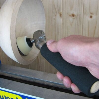 The bowl sander is used to effortlessly sand pieces whilst they are still mounted on the lathe. Set the lathe running and then use the foam pad to sand to a fine finish, even with intricate shapes.