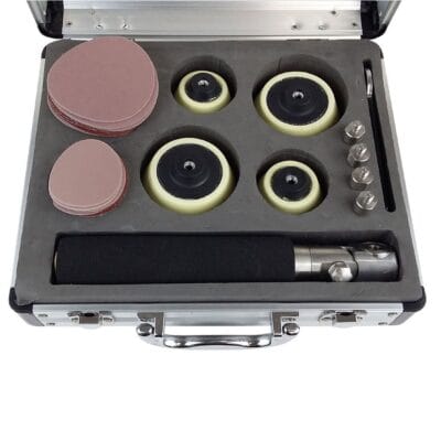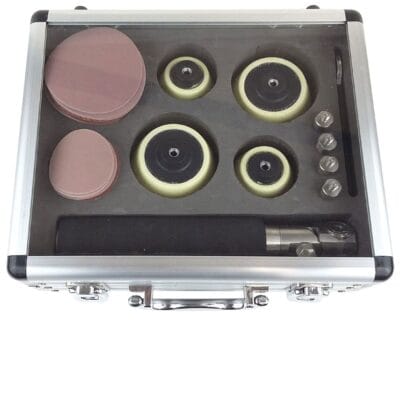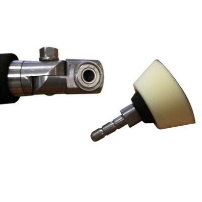 The four foam backed, Hook & Loop faced sanding pads are a push fit into the head, so no tools required. The soft foam backing allows the pad to change shape and take the form of the piece being sanded, with only a light press.