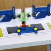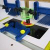 A versatile floor standing router table for inverted table routing. Can be used with any 1/4″ or 1/2″ sized router. The table top is made from a single piece of 35mm thick laminated MDF, to provide a flat and durable surface to work on. The mounting plate is made from a tough plastic which can be drilled to mount any router. The plate is held in place by magnets allowing tool free removal of the router & insert plate from the table, when making adjustments or changing cutters. Two insert rings allow the diameter of the aperture to be reduced when working with smaller diameter cutters.