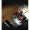 The roller guide utilizes an ‘Independent Suspension Mechanism’ where each roller has its own pre-loaded spring. This design enables the two guide rollers to adapt to uneven wood surfaces with consistent holding pressure by moving independently.
