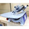 This enables the user precise control over the work, which is placed on the large horizontal fixed steel table. Both hands are free to guide the work piece, while simultaneously controlling the blade speed via their foot operated throttle pedal switch. This is the safest practice for accurate cutting.