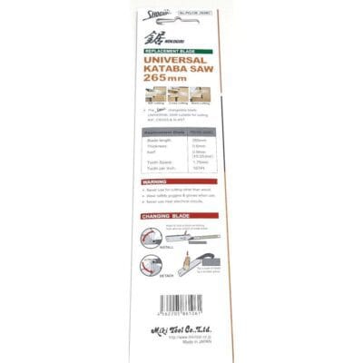 The Shogun OK265RC is a fantastic Hassunme Kataba saw with special universal toothed blade making it capable of Rip cuts and angle cuts in all types of timber including man made boards. You can rip down an 8′ x 4′ board with this saw.