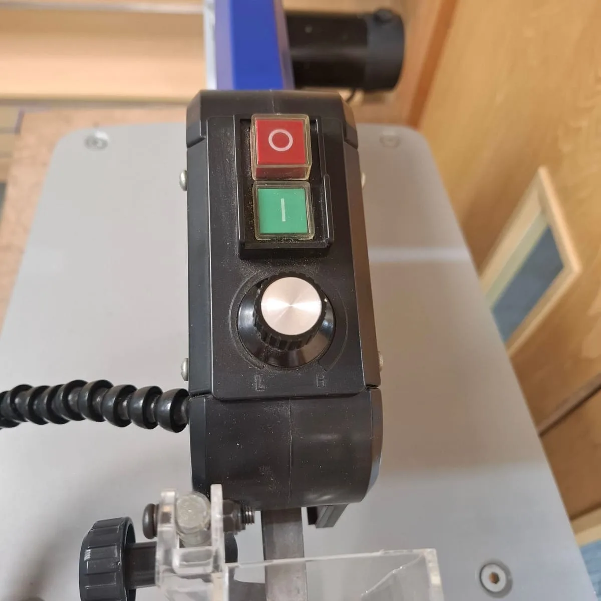 The addition of the foot pedal switch will transform the way you work with the saw, allowing speeds from 0 to 1550 spm to be controlled via the foot pedal. Once you have tried it you never want to be without it! The ability to stop and start without removing hands from the work piece, allows you to work quicker and more accurately, especially with complex designs.