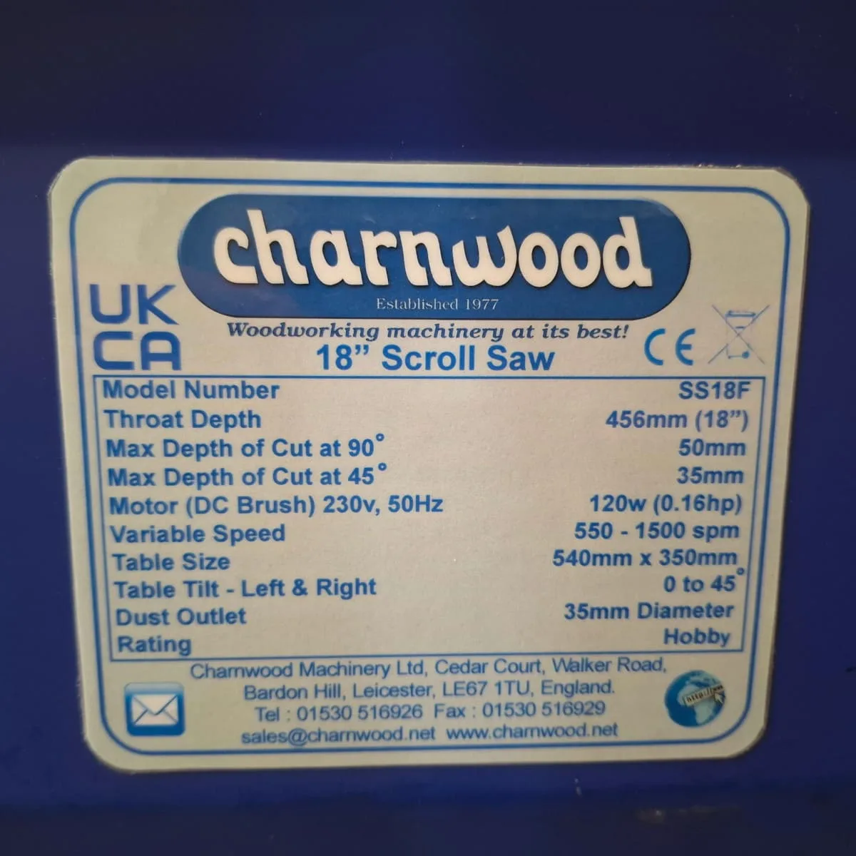 The Charnwood SS18F Scroll Saw is perfect for hobby, craft and model making. It’s fitted with a powerful 120w (0.16hp) smooth running motor, allowing electronic variable speed control from both machine mounted and foot pedal switches.