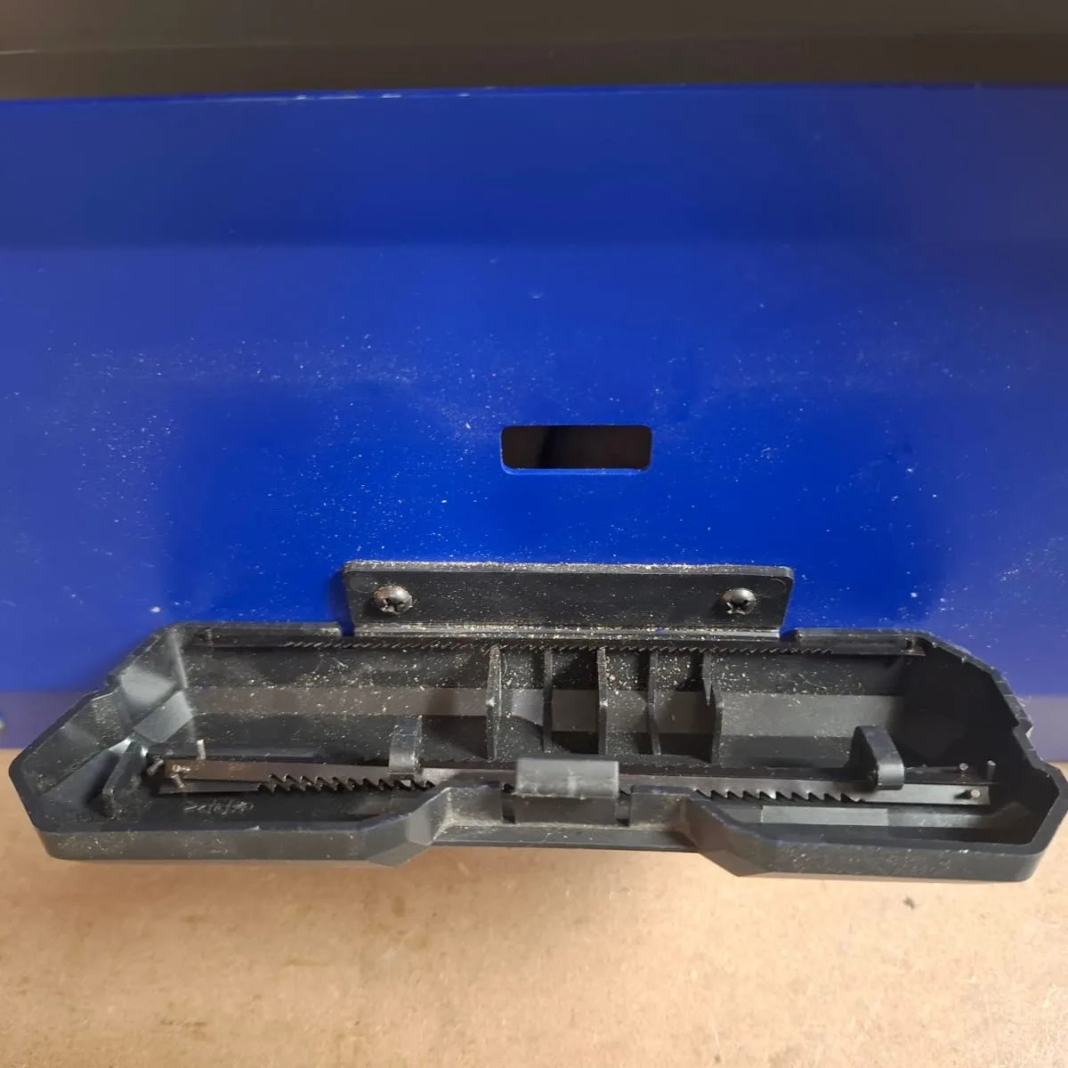 On the side of the saw is a storage compartment to keep spare blades and service tools safe & ready to use.