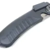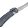 The two blades are unlocked using a thumb button. Both blades can be locked in the open position and also locked when closed for safety.