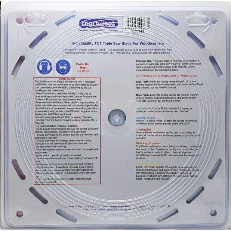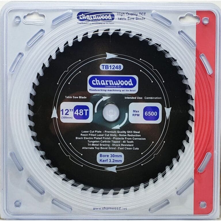 TB1248 Combination: Medium Finish, suitable for ripping and crosscutting in softwood, hardwood, exotic timber, plywood, particle board and MDF