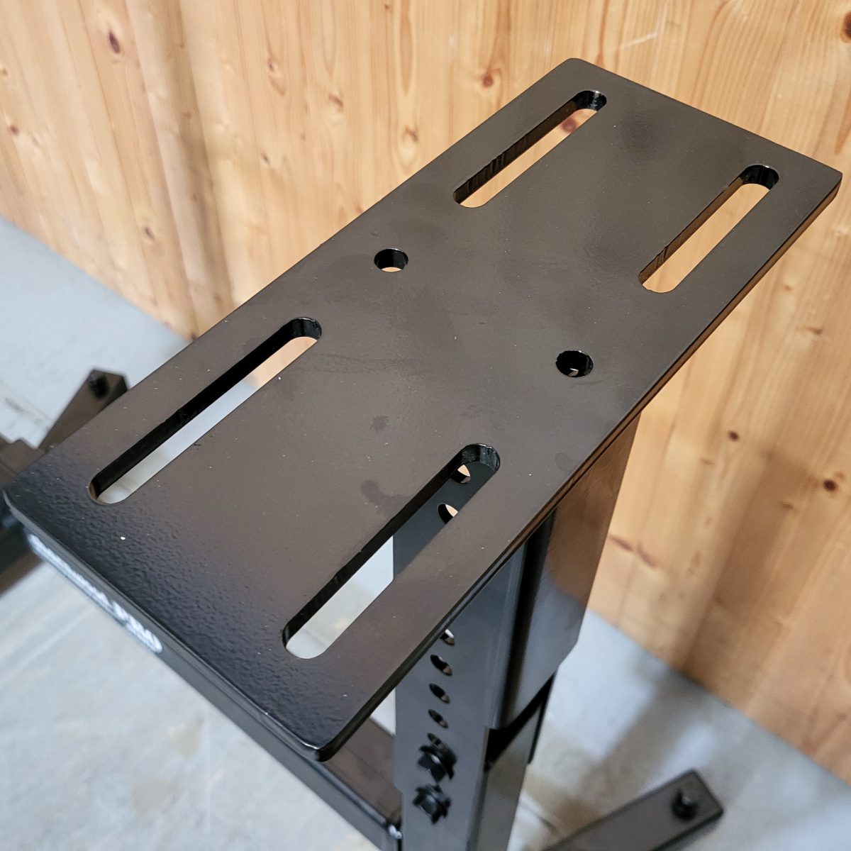 The width of the stand is fully adjustable allowing it to be compatible with many different makes and models of lathe. The two mounting platforms have a series of slotted holes for securely bolting the lathe to the stand.