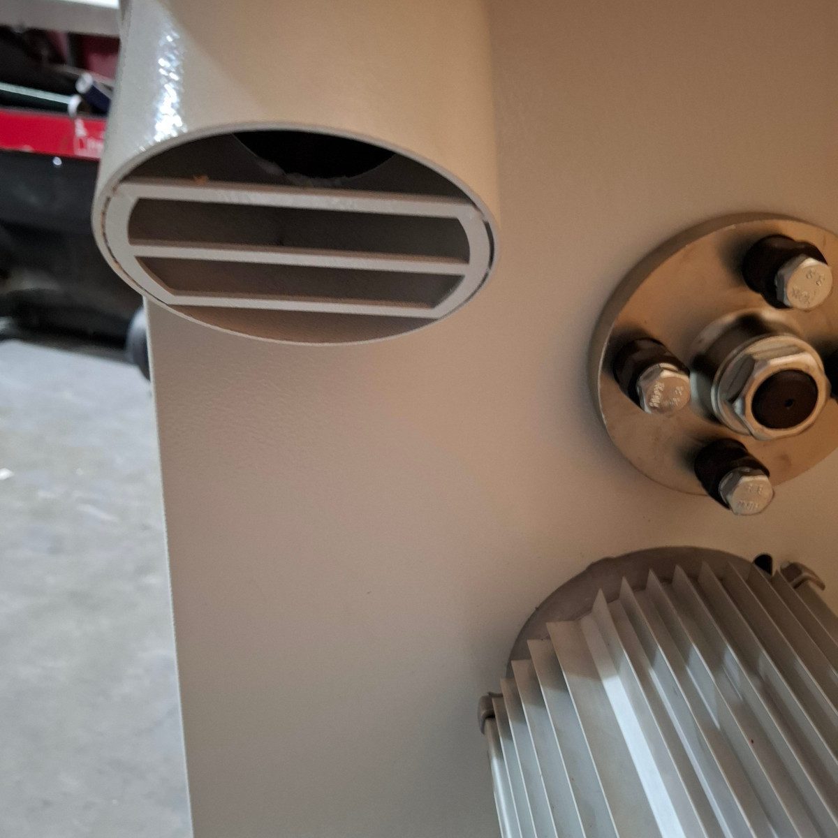 Efficient dust extraction is achieved through 2 x 100mm (4″) diameter outlets, one located just underneath the table and one at the base. A deflector sends the dust into the collection port before it comes into contact with the lower wheel and other moving parts – extending their lifespan.
