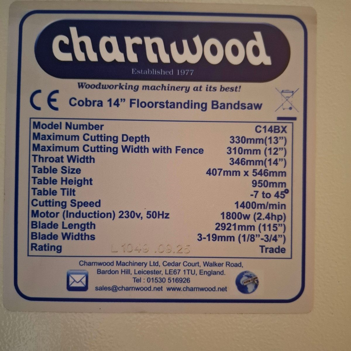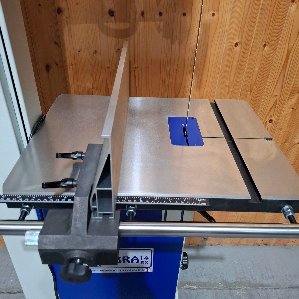 Supplied with British made 13mm blade, push stick, mitre guide, 1.9m cable with UK 3 pin plug.