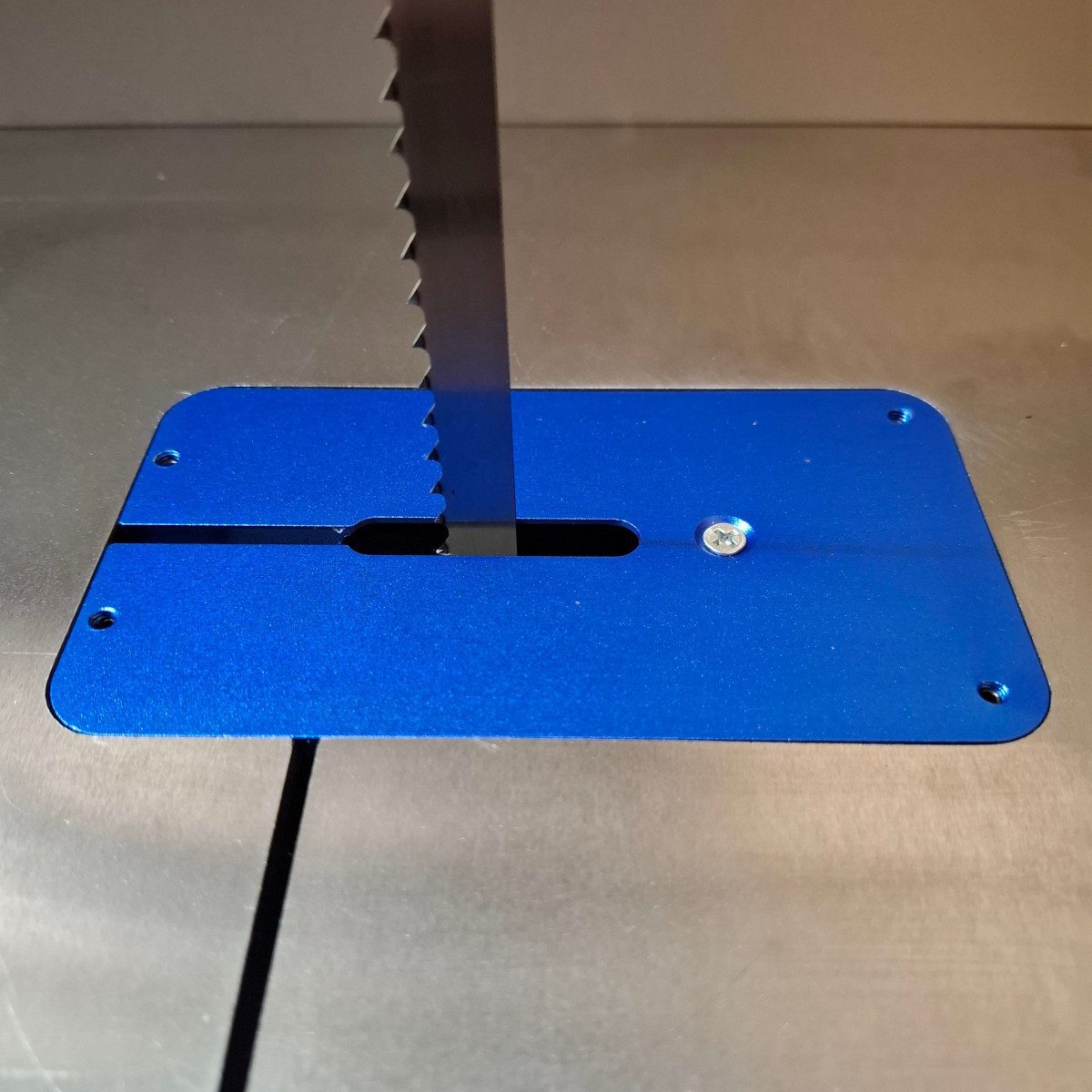 The micro polished cast iron table is mounted onto an over sized double cast iron trunnion with two locking points that ensure there is a solid surface to work from. The table tilts to 45° with a positive stop at 90°. A flip plate allows reverse tilt up to 7° when required. In the centre of the table is an aluminium throat plate with 4 adjusting screws to ensure a perfect flush fit.