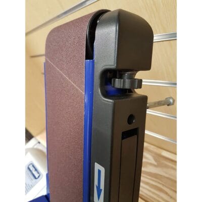 When the time comes to replace the sanding belt there is a quick release tension lever and tracking adjustment to balance the new belt.